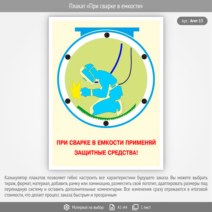 Плакат «При сварке в емкости» (Агит-13, 1 лист)