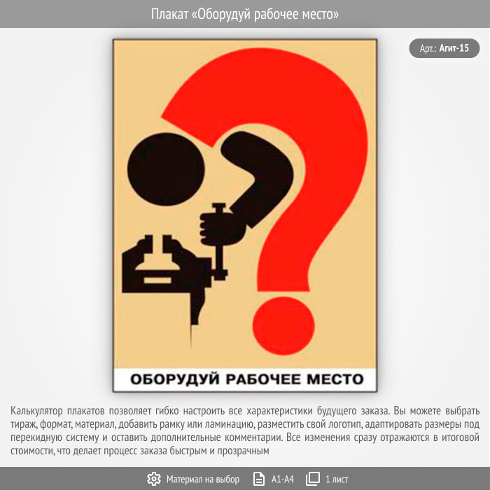 Плакат «Оборудуй рабочее место» (Агит-15, 1 лист)