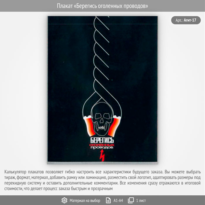 Плакат «Берегись оголенных проводов» (Агит-17, 1 лист)