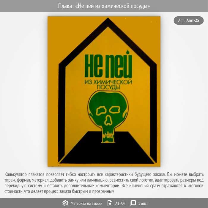 Плакат «Не пей из химической посуды» (Агит-25, 1 лист)