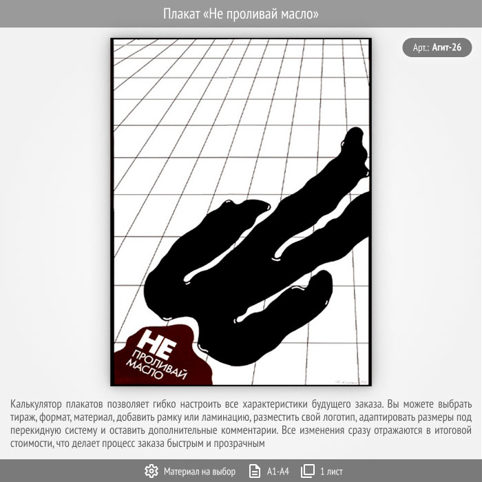 Плакат «Не проливай масло» (Агит-26, 1 лист)