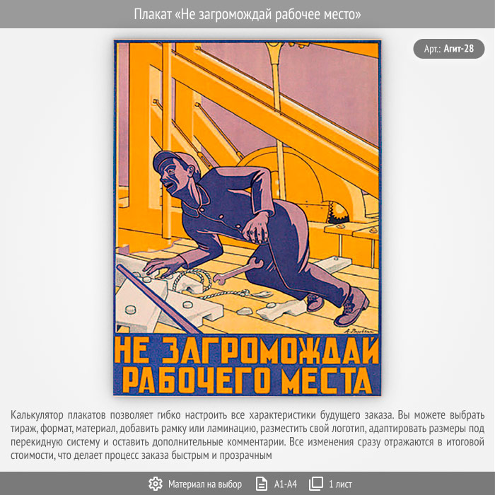 Плакат «Не загромождай рабочее место» (Агит-28, 1 лист)