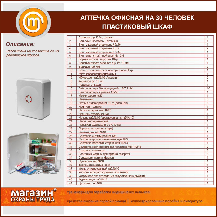 Аптечка ОФИСНАЯ (до 30 человек) - металлический шкаф | Аптечка ОФИСНАЯ (до 30 человек) - металлический шкаф |
