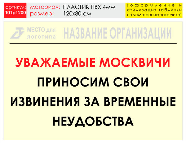 Баннер «Извинения», T01 (пластик 4 мм, 120х90 см)