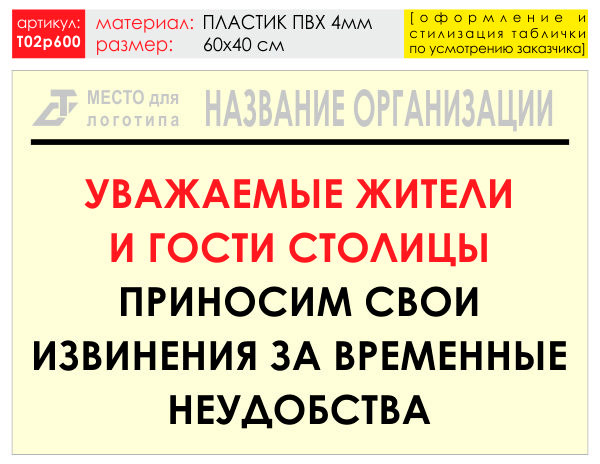 Баннер «Извинения», T02 (пластик 4 мм, 60х40 см)
