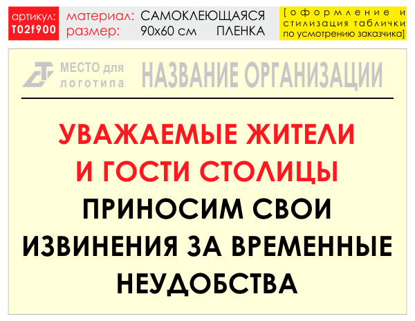 Баннер «Извинения», T02 на самоклеящейся плёнке, размером 90х60 см