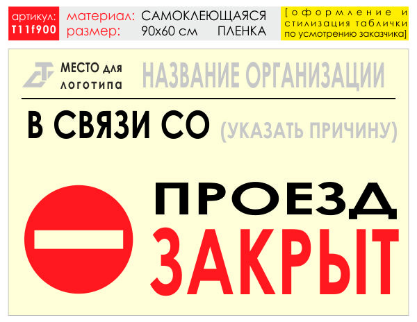 Баннер «Проезд закрыт», T11 на самоклеящейся плёнке, размером 90х60 см