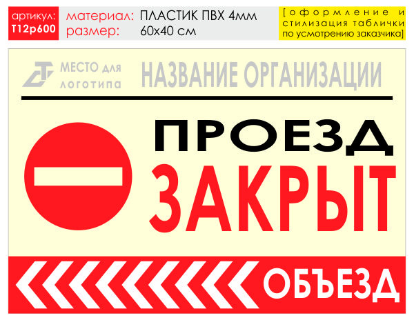 Баннер «Объезд слева», T12 на пластике, размером 60х40 см