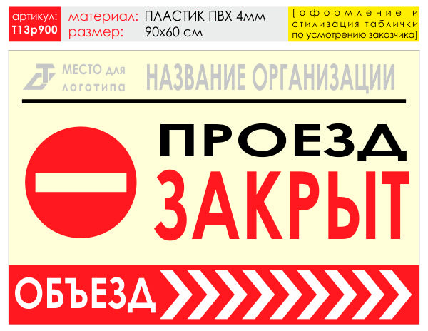 Баннер «Объезд справа», T13 на пластике, размером 90х60 см