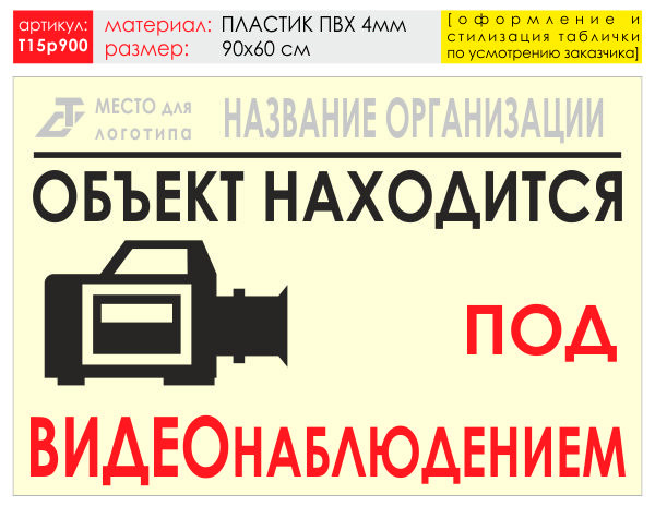 Баннер «Видеонаблюдение», T15 (пластик 4 мм, 90х60 см)