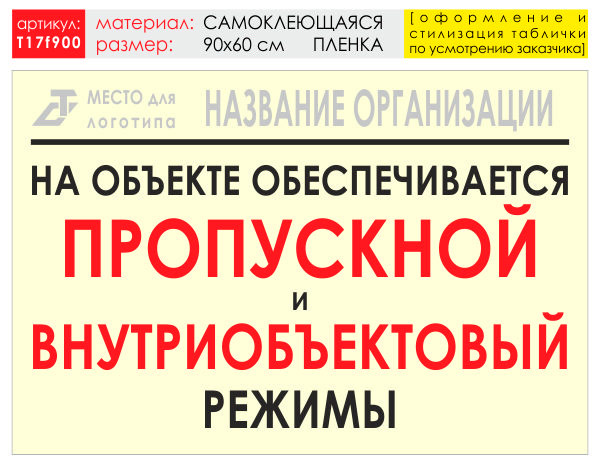 Баннер «Режим», T17 на самоклеящейся плёнке, размером 90х60 см