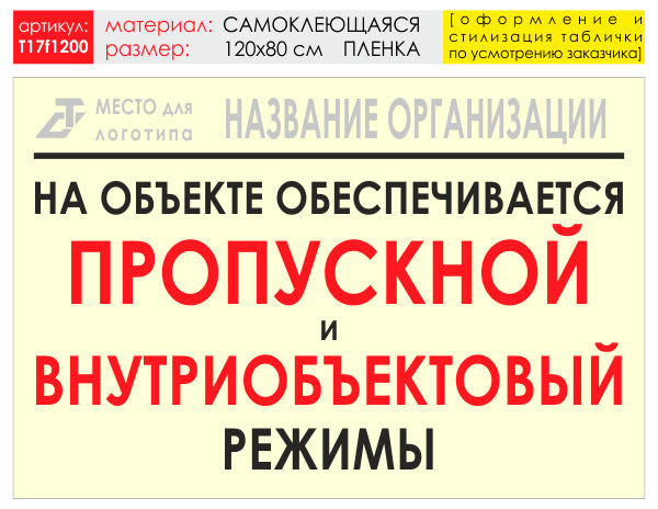 Баннер «Режим», T17 (самоклеящаяся плёнка, 120х90 см)