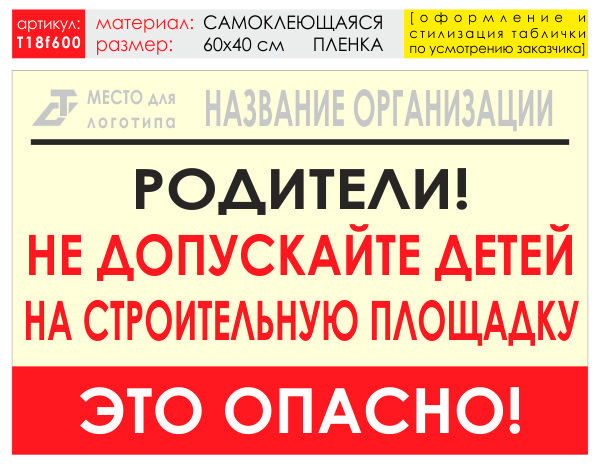 Баннер «Родители!», T18 (самоклеящаяся плёнка, 60х40 см)