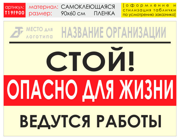 Баннер «Опасно для жизни», T19 (самоклеящаяся плёнка, 90х60 см)