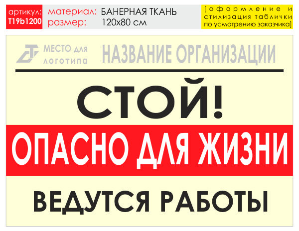 Баннер «Опасно для жизни», T19 на баннерной ткани, размером 120х90 см