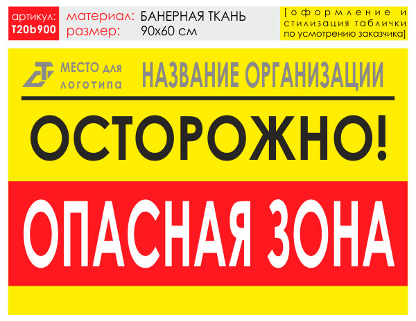 Баннер «Опасная зона», T20 (баннерная ткань, 90х60 см)