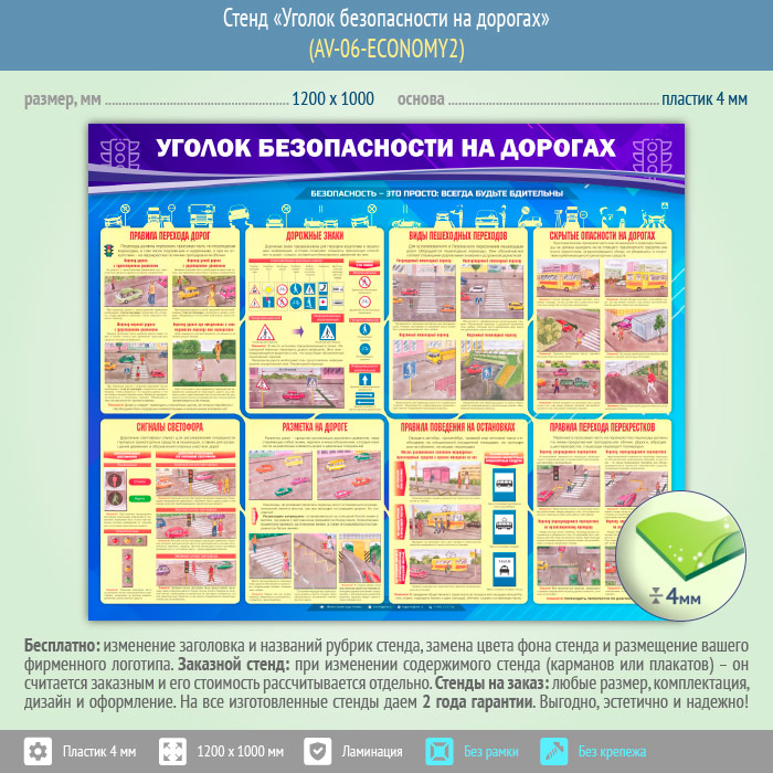 Стенд «Уголок безопасности на дорогах» (AV-06-ECONOMY2)