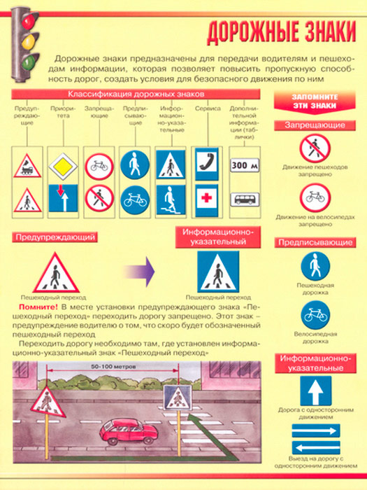 - Плакат «Дорожные знаки» – классификация и знаки, которые необходимо запомнить