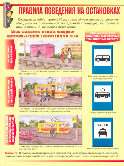 - Плакат «Правила поведения на остановках» – места расположения остановок маршрутных транспортных средств и правила поведения на них