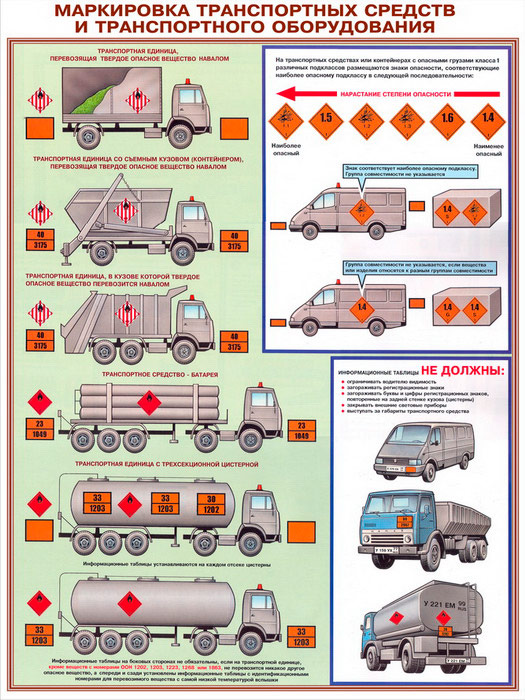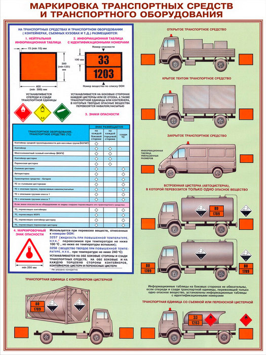 - Два плаката – «Маркировка транспортных средств и транспортного оборудования» – правила обозначения перевозимого груза