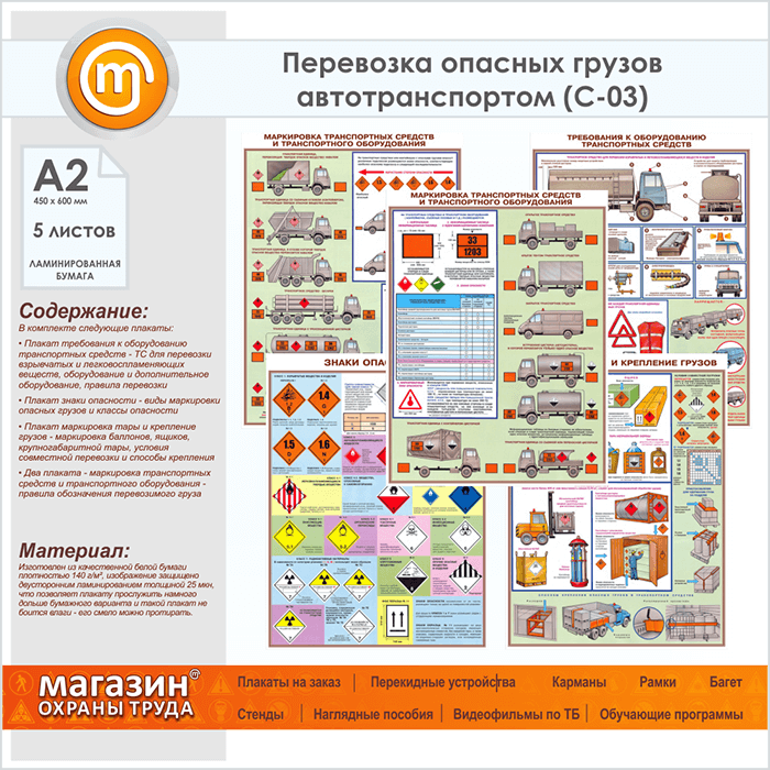 Комплект плакатов «Перевозка опасных грузов автотранспортом» из 5 листов – достойное качество и полезная информация по приемлемой цене