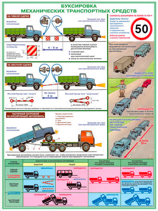 - Плакат «Буксировка механических транспортных средств» – способы транспортировки, правила движения, схемы