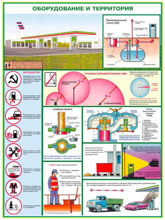 - Плакат «Оборудование и территория» – принципиальная схема АЗС, взрывоопасные зоны, правила поведения на АЗС