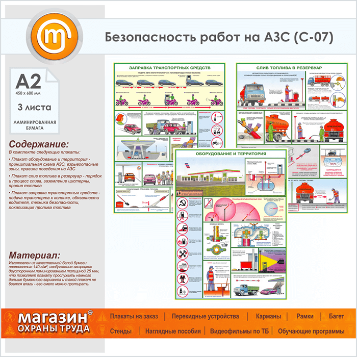 Комплект плакатов «Безопасность работ на АЗС» из 3 листов – достойное качество и полезная информация по приемлемой цене