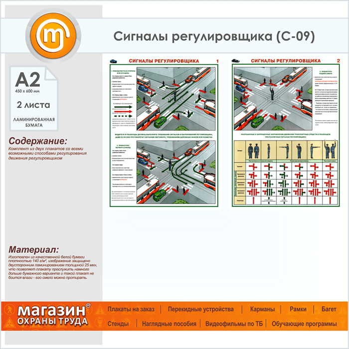 Комплект плакатов «Сигналы регулировщика» из 2 листов – достойное качество и полезная информация по приемлемой цене