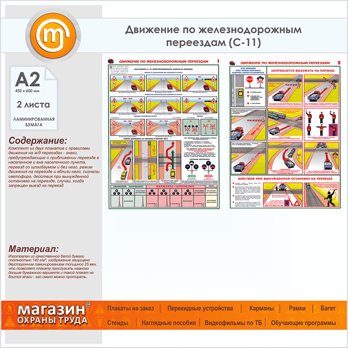 Плакаты «Движение по железнодорожным переездам» (С-11, ламинированная бумага, А2, 2 листа)