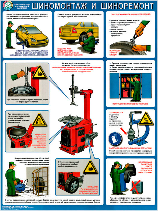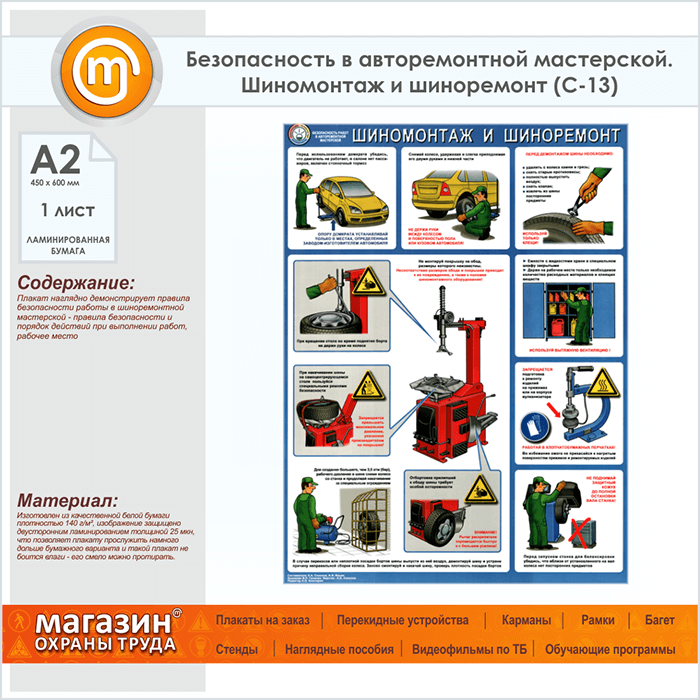 Плакат «Безопасность в авторемонтной мастерской. Шиномонтаж и шиноремонт» – достойное качество и полезная информация по приемлемой цене