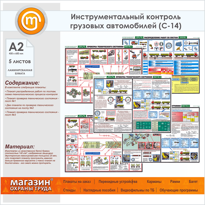 Комплект плакатов «Инструментальный контроль грузовых автомобилей» из 5 листов это комплексный подход к изучению правил безопасности на дороге и при работе с автомобилем
