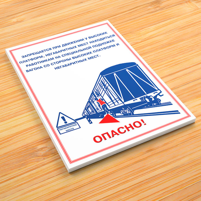 - 4 плакат: запрещается при движении у высоких платформ и негабаритных мест находиться работникам на специальной подножке вагона...