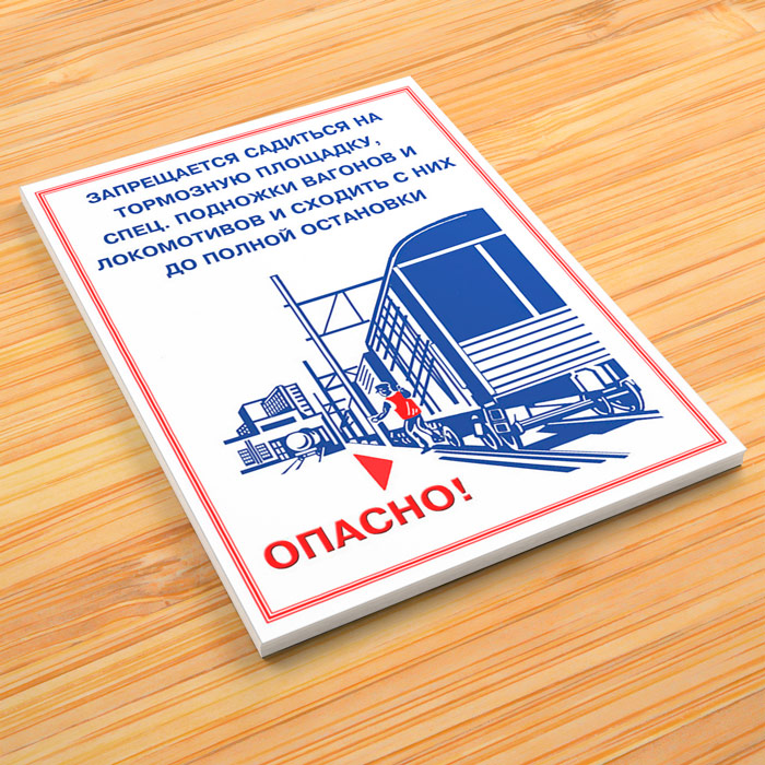 - 5 плакат: запрещается садиться на тормозную площадку специальной подножки вагонов и локомотивов...