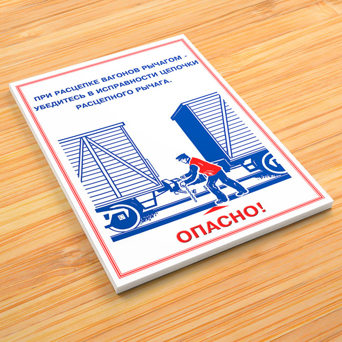 - 12 плакат: при расцепке вагонов рычагом – убедитесь в исправности цепочки расцепного рычага