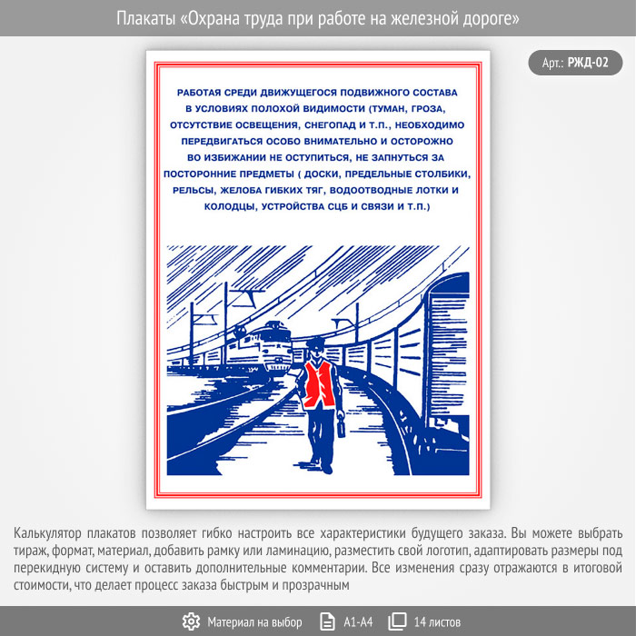 Плакаты «Охрана труда при работе на железной дороге» (РЖД-02, 14 листов)