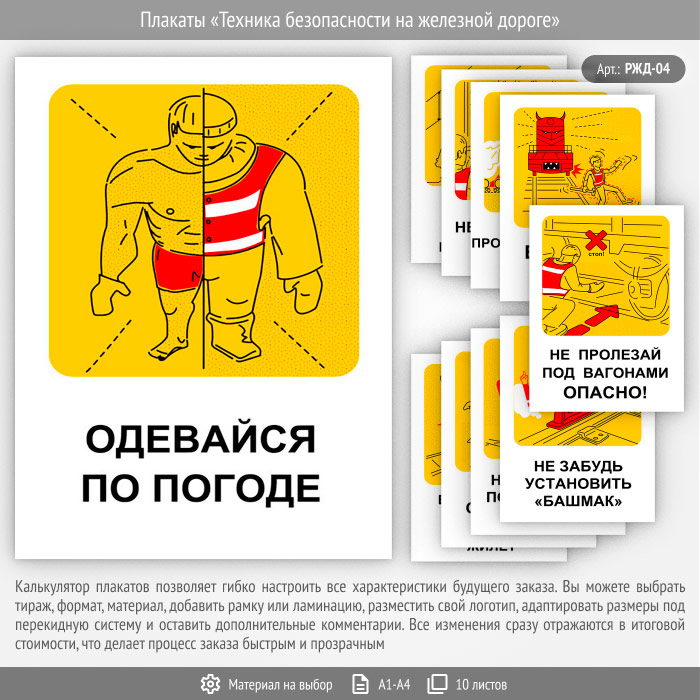Плакаты «Техника безопасности на железной дороге» (РЖД-04, 10 листов)