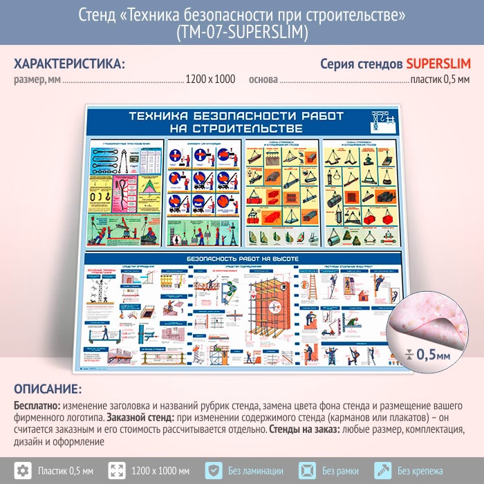Стенд «Техника безопасности при строительстве» (TM-07-SUPERSLIM)