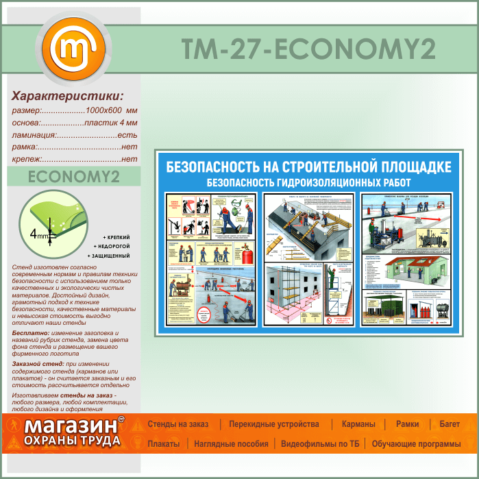 Стенд «Безопасность на строительной площадке. Безопасность гидроизоляционных работ» (TM-27-ECONOMY2)