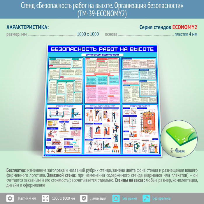 Стенд «Безопасность работ на высоте. Организация безопасности» (TM-39-ECONOMY2)