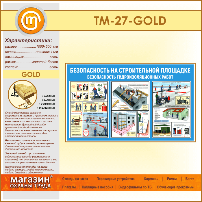 Стенд «Безопасность на строительной площадке. Безопасность гидроизоляционных работ» (TM-27-GOLD)