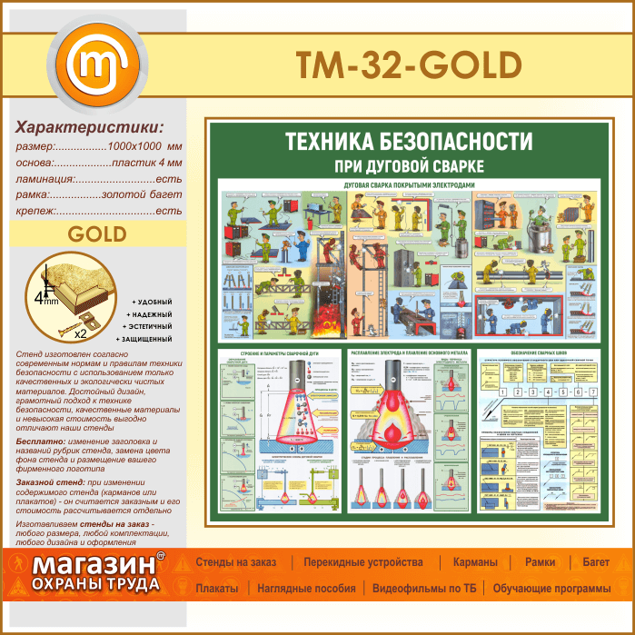 Стенд «Техника безопасности при дуговой сварке» (TM-32-GOLD)