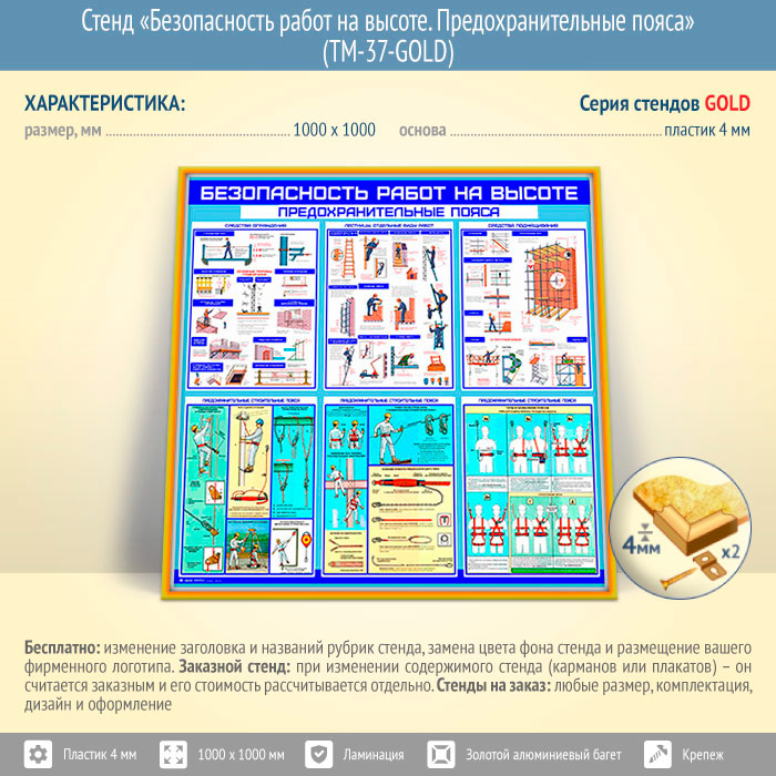 Стенд «Безопасность работ на высоте. Предохранительные пояса» (TM-37-GOLD)