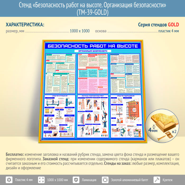 Стенд «Безопасность работ на высоте. Организация безопасности» (TM-39-GOLD)