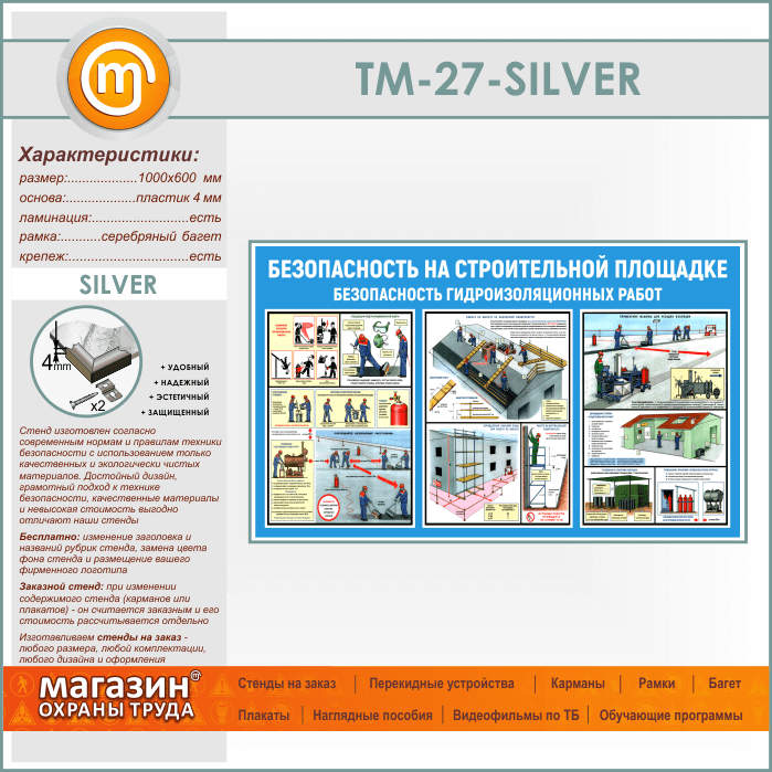 Стенд «Безопасность на строительной площадке. Безопасность гидроизоляционных работ» (TM-27-SILVER)