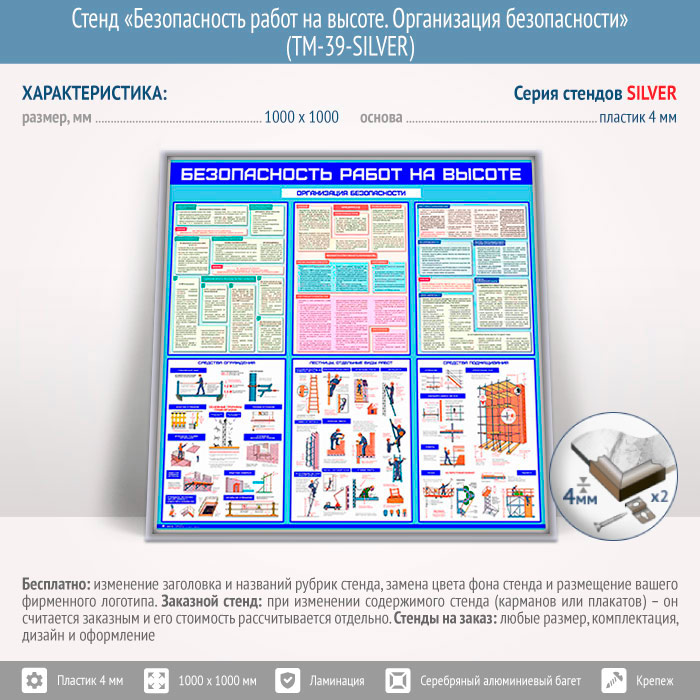 Стенд «Безопасность работ на высоте. Организация безопасности» (TM-39-SILVER)