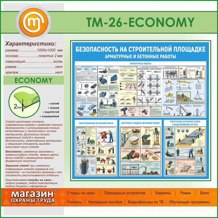 Стенд «Безопасность на строительной площадке. Арматурные и бетонные работы» (TM-26-ECONOMY)