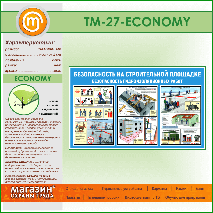 Стенд «Безопасность на строительной площадке. Безопасность гидроизоляционных работ» (TM-27-ECONOMY)