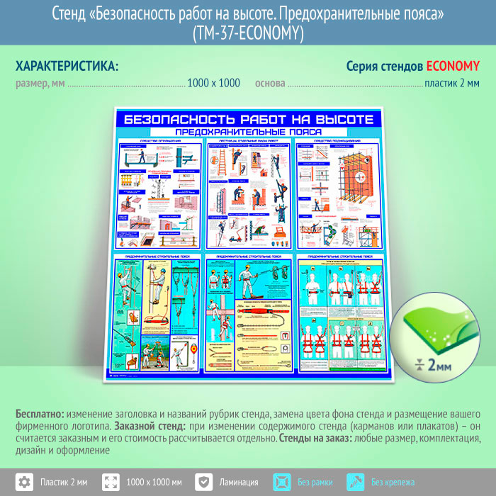 Стенд «Безопасность работ на высоте. Предохранительные пояса» (TM-37-ECONOMY)