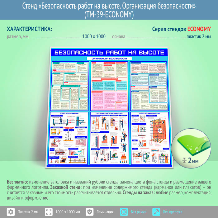Стенд «Безопасность работ на высоте. Организация безопасности» (TM-39-ECONOMY)
